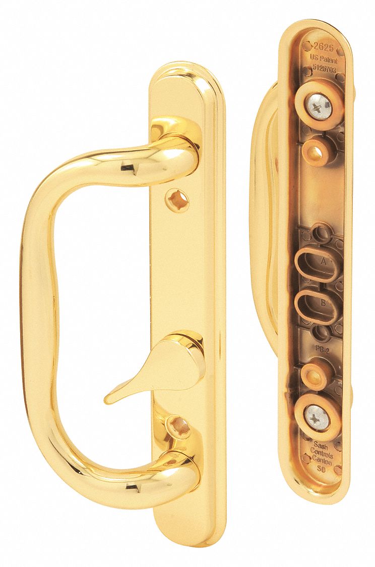 PRIMELINE Patio Door Handle Set, Polished Brass 54FY42C 1287 Grainger